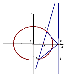 ),确定q的值,使原点距椭圆的右准线l最远,此时,设l与x轴交点为D,当直线m绕点F转动到什么位置时,三角形ABD的面积最大?