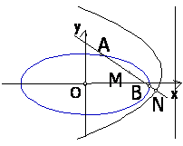 的一条弦,M(2,1)是AB中点,以M为焦点,以椭圆的右准线为相应准线的双曲线与直线AB交于N(4,-1)。