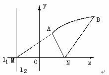 21.(本小题满分11分)如图,直线l1和l2相交于点M,l1⊥l2,点N∈l1。以A、B为端点的曲线段C上的任一点到l2的距离与点N的距离相等。若△AMN为锐角三角形,|AM|=