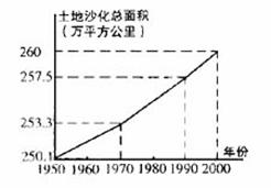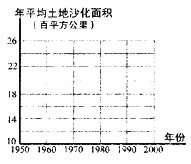 (12) 据报道,我国目前已成为世界上受荒漠化危害最严重的国家之一,左下图表示我国土地沙化总面积在上个世纪五六十年代、七八十年代、九十年代的变化情况,由图中的相关信息,可将上述有关年代中,我国年平均土地沙化面积在右下图中图示为: