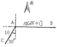 海里的B处有一艘渔船遇险等待营救,甲船立即前往救援。同时把消息告知在甲船的南偏西30°,相距10海里C处的乙船,试问乙船应朝北偏东多少度的方向沿直线前往B处救援?