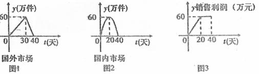 某跨国公司是专门生产健身产品的企业,第一批产品A上市销售40天内全部售完,该公司对第一批产品A上市后的国内外市场销售情况进行调研,结果如图1、图2、图3所示。其中图1的折线表示的是国外市场的日销售量与上市时间的关系;图2的抛物线表示的是国内市场的日销售量与上市时间的关系;图3的折线表示的是每件产品A的销售利润与上市时间的关系.