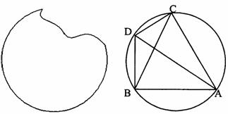(1)现有一个破损的圆块(如左下图),只给出一把带有刻度的直尺和一个量角器,请你设计一种方案,求出这个圆块的直径的长度。