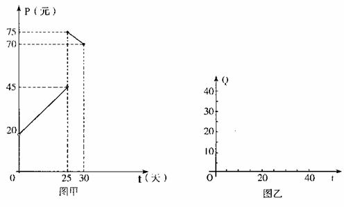 某种商品在30天内每件的销售价格P(元)与时间t(天)的函数关系用图甲表示,该商品在30天内日销售量Q(件)与时间t(天)之间的关系如下表所示:
