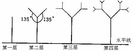 22. (本题满分18分,其中第(1)小题6分,第(2)小题6分,第(3)小题6分)如图所示,是树形图形.第一层是一条与水平线垂直的线段,长度为1;第二层在第一层线段的前端作两条与该段均成1350的线段,长度为其一半;第三层按第二层的方法在每一线段的前端生成两条线段;重复前面的作法作图至第n层.设树形图的第n层的最高点到水平线的距离为第n层树形图的高度。