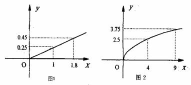 20、(本小题满分12分)某民营企业生产A、B两种产品,根据市场调查与预测,A产品的利润与投资成正比,其关系如图1,B产品的利润与投资的算术平方根成正比,其关系如图2(注:利润与投资单位:万元)