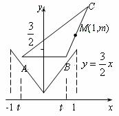 |x|在x∈[-1,1]的图象上有两点A,B,AB∥Ox轴,点M(1,m)(m是已知实数,且m>