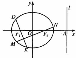 的焦点分别为F1(-1,0)、F2(1,0),右准线l交x轴于点A,且![]()