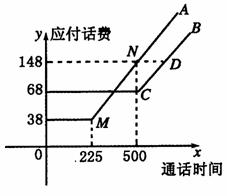 电信局为了配合客户不同需要,设有A、B两种方案这两种方案应付话费(元)与通话时间(分钟)之间的关系如图所示(MN//CD).
