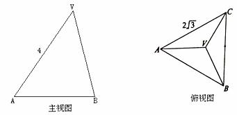10. 已知正三棱锥V-ABC的主视图、俯视图如下图所示,其中