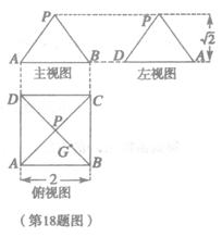 某几何体的三视图如图所示,P是正方形ABCD对角线的交