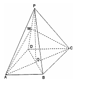 如图,在四棱锥P-ABCD中,底面ABCD为等腰梯形,AB//CD,AD=BC=2,对角线AC⊥BD于O,∠DAO=60°,且PO⊥平面ABCD,直线PA与底面ABCD所成的角为60°,M为PD上的一点。