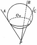 12.如图是根细铁杆PA、PB、PC组成的支架,三根杆的两两夹角都是60°,一个半径为1的球放在支架上,则球心O到点P的距离是__________
