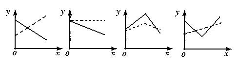 (如f(2)=3是价格开始买卖后2小时的即时价格为3元;g(2)=3表示2小时内的平均价格为3元),下面给出了四个图象,其中实线表示y=f(x),虚线表示y=g(x),其中可能正确的是