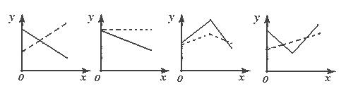 (如f(2)=3是价格开始买卖后2小时的即时价格为3元;g(2)=3表示2小时内的平均价格为3元),下面给出了四个图象,其中实线表示y=f(x),虚线表示y=g(x),其中可能正确的是