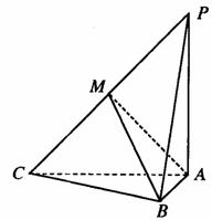 如图,三棱锥P-ABC中,PA⊥AB,PA⊥AC,AB⊥AC,PA=AC=2,AB=1,M为PC的中点。