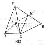 ,A为PB边上一点,且PA=1.将△PAD沿AD折起,使面⊥面ABCD(如图2).