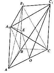 直三棱柱ABC-A1B1Cl中,已知AB=BC=2,∠ABC=90°,异面直线AlB与AC成60°角,点O、E分别为AC、BBl的中点.
