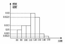 (13) 高三某班50名学生参加某次数学模拟考试 所得的成绩(成绩均为整数)整理后画出的频率分布直方图如右图,则该班得120分以上的同学共有 人.