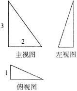 16.一个空间几何体的主视图、左视图、俯视图为直角三角形,如果边长如图所示,那么这个几何体的体积为