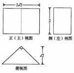 5.一个几何体的三视图中,正视图和侧视图都是矩形,俯视图是等腰直角三角形(如图),根据图中标注的长度,可以计算出该几何体的表面积是 ( )