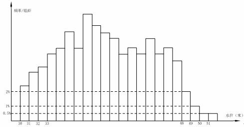7.根据某水文观测点的历史统计数据,得到某条河流水位的频率分布直方图(如图2),从图中可以看出,该水文观测点平均至少一百年才遇到一次的洪水的最低水位是