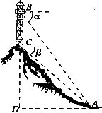 如图,在山顶铁塔上B处测得地面上一点A的俯角为a,在塔底C处测得A处的俯角为