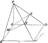 如图,四棱锥P-ABCD的底面是正方形,PA⊥底面ABCD,PA=AB,E、F、M分别是线段PD、PC、AB的中点。