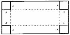 今有一长2米宽1米的矩形铁皮,如图,在四个角上分别截去一个边长为x米的正方形后,沿虚线折起,做成一个无盖的长方体形水箱(按口连接问题不考虑)。