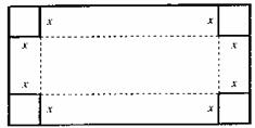 今有一长2米宽1米的矩形铁皮,如图,在四个角上分别截去一个边长为x米的正方形后,沿虚线折起,做成一个无盖的长方体形水箱(按口连接问题不考虑)。