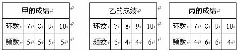 4.甲、乙、丙三名射箭运动员在某次测试中各射箭20次,三人的测试成绩如下表