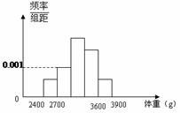 观察新生婴儿的体重,其频率分布直方图如图所示,则新生婴儿体重在(2700,3000)的频率为( )