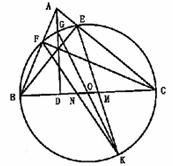 13.如图,AD,BE,CF分别是锐角△ABC的三条高,垂足分别为D,E,F,以BC为为直径的圆O和AD交于G点,过G的直径的另一端点为K,若EK,FK和BC分别交于M,N。求证:OM=ON。