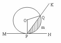 12. 如图,半径为2的⊙O切直线MN于点P,射线PK从PN出发,绕P点逆时针旋转到PM,旋转过程中PK交⊙O于点Q,若∠POQ为x,弓形PmQ的面积为S=f(x),那么f(x)的图象大致是:( )