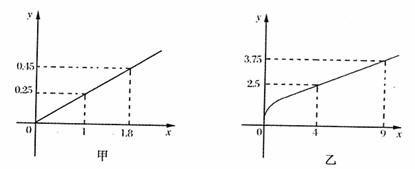 19.(本小题满分12分)某民营企业生产A、B两种产品,根据市场调查与预测,A产品的利润与投资成正比,其关系如图甲,B产品的利润与投资的算术平方根成正比,其关系如图乙(注:利润与投资单位:万元)