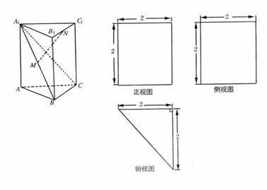 20.(本小题满分12分)一个多面体的直观图及三视图如图所示,M、N分别为A1B、B1C1的中点。