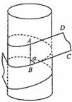 指缠绕中将部分带子拉成图中所示的平面ABCD时的∠ABC,其中AB为管道侧面母线的一部分),若带子宽度为1,水管直径为2,则“缠绕角度”