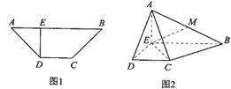 已知四边形ABCD的等腰梯形,AB=3,DC=1,∠BAD=45°,DE⊥AB(如图1)现将△ADE沿DE折起,使得AE⊥EB(如图2),连结AC、AB、设M是AB的中点.