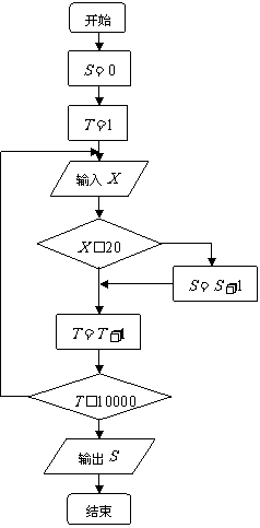 ③21-30分钟;④30分钟以上.有10000名中学生参加了此项活动,下图是此次调查中某一项的流程图,其输出的结果是6200,则平均每天参加体育锻炼时间在0-20分钟内的学生的频率是 ( )