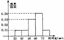 5.如图是200辆汽车通过某一段公路时的时速频率分布条形图,那么时速在[40,70)的汽车的辆数为 ( )