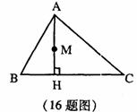 16.如图,在△ABC中,AB=2,BC=3,∠ABC=60°,AH⊥BC,垂足为H,M为AH的中点,若