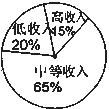 3.2005年底,某地区经济调查队对本地区居民收入情况进行抽样调查,抽取1000户,按地区确定的标准,情况如右表,本地区在“十一五”规划中明确提出要缩小贫富差距,到2010年要实现一个美好的愿景,由右边圆图显示,则中等收入的家庭数量在原有的基础要增加百分比和低收入家庭的数量在原有的基础要降低的百分比分别为 ( )