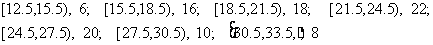 16.(8分)有一个容量为100的样本,数据的分组及各组的频数如下: