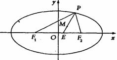 焦距为2,点P在椭圆C上,M是△F1PF2内心,PM的延长线交x轴于点E,且![]()