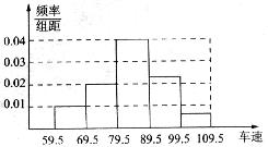 14.在某路段检查站监控录像显示,在某时段内,有l000辆汽车通过该站,现随机抽取其中的200辆汽车进行车速分析,分析的结果表示为如图所示的频率分布直方图,则估计在这一时段内通过该站的汽车中车速不小于90km/h的约有___________辆.(注:分析时车速均取整数)