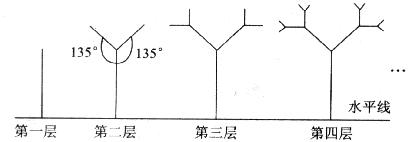 20.(本小题满分13分)如图所示的树形图.第一层是一条与水平线垂直的线段,长度为1;第二层在第一层线段的前端作两条与该线段均成135°角的线段,长度为其一半;第三层按第二层的方法在每一线段的前端生成两条线段;重复前面的做法作图至第n层.设树形图的第n层的最高点到水平线的距离为笫n层树形图的高度.