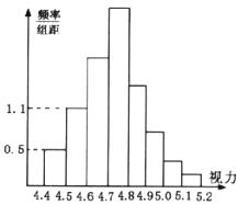 11.为了了解某校高三学生的视力情况,随机地抽查了该校100名高三学生的视力情况,得到频率分布直方图如下图,由于不慎将部分数据丢失,但知道后5组频数和为62,视力在4.6到4.8之间的学生数为
