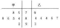 14.青年歌手大奖赛共有10名选手参赛,并请了7名评委,如下茎叶图是7名评委给参加最后决赛的两位选手甲、乙评定的成绩,去掉一个最高分和一个最低分后,甲、乙选手剩余数据的平均成绩分别为____________________.