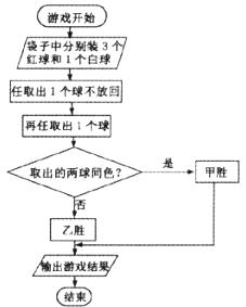 15.甲、乙两人玩游戏,规则如框图所示,则甲胜的概率为__________________.