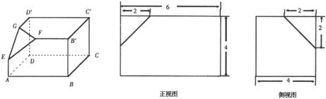 18.下面的三个图中,左面的是一个长方体截去一个角所得多面体的直观图,它的正视图和侧视图在下面画出(单位:cm)。